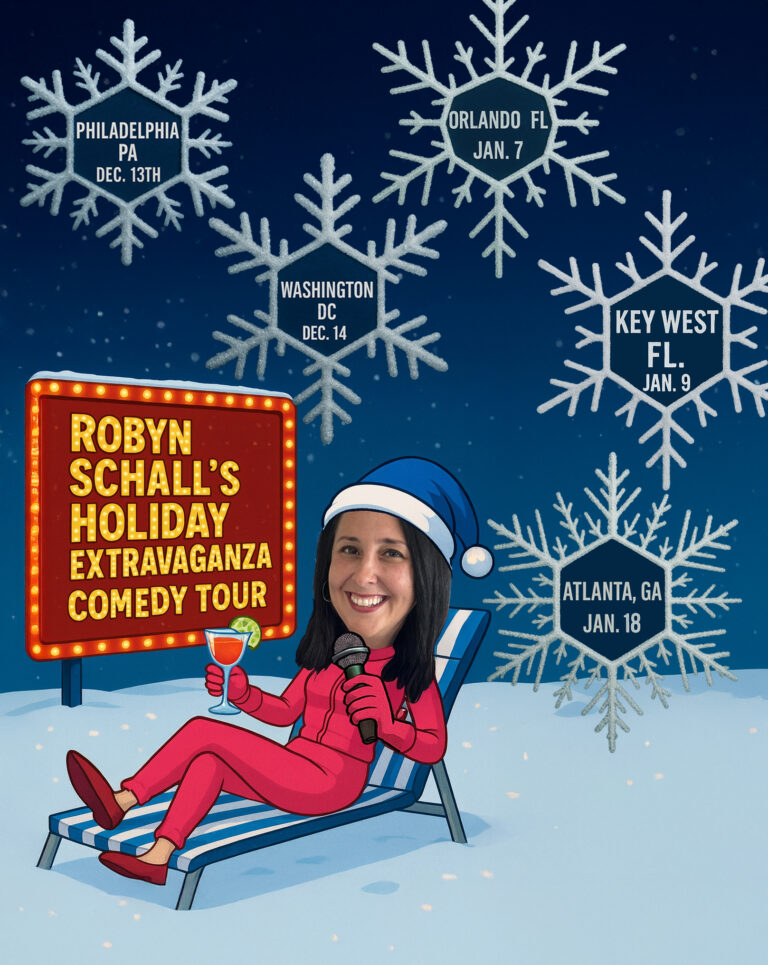 Robyn has performed her stand-up all over the world including three tours overseas for the U.S. troops and all over Europe, Asia, Middle East, and Australia. She is currently touring her one-women comedy show, The Robyn Schall Experience. Her comedy album, “Guilty Pleasure”, debuted at #1 on the iTunes Charts and was featured multiple times on SiriusXM Radio.